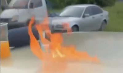 To illustrate the potency of vodka, a man’s car burned during a picnic.