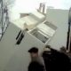 Lugging a full cupboard, they dropped it before they could climb the stairs.