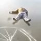 The technician tumbled as the assistant dropped the ladder while holding the air conditioner filter cleaner over him.