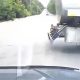 This dude fell hard when his foot got caught in the roller during dyno testing.