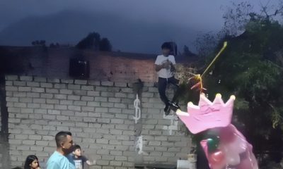 The dude with the rope took a tumble off the wall while the fam was having a blast with a piñata.