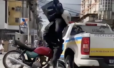 A motorcyclist hit a citizen walking on the sidewalk in Istanbul.