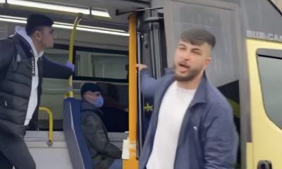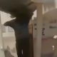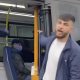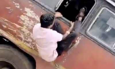 A man tried to access the bus by climbing through the window, and the panel shattered.