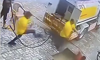 Picture this: a guy at the pump, asleep, hit by a speeding motorcycle. It was like something out of a movie!