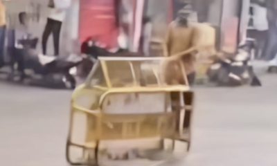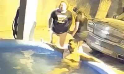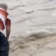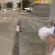 People saw some dude using a police barricade as a makeshift ride through the flooded area.