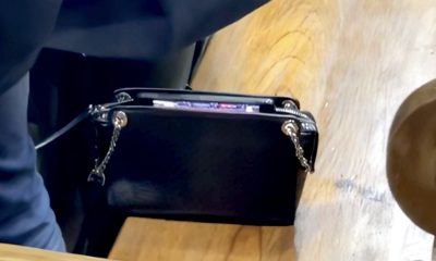 The dude listens to a football match on his phone in his bag while the church is praying.
