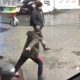 Watermelon hit on the head while unloading watermelon from the truck in fruit form