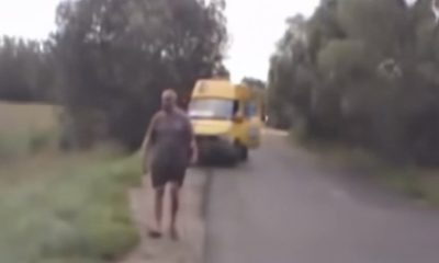 The van ended up in a ditch because the man, who was in a hurry to pee, failed to use the handbrake.
