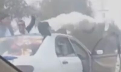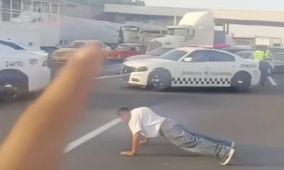 Dude just save time by working out on way to work opens the car door at 40 mph to do squats
