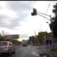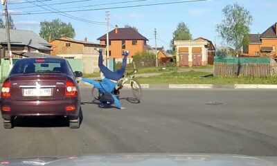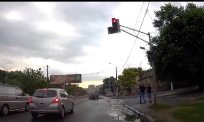 When the speeding vehicle could not stop at the red light, it hit the cyclist passing the green light.