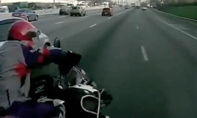 When a careless driver who did not pay attention to the motorcyclist suddenly changed the line, the motorist ran away from the vehicle that changed the...