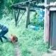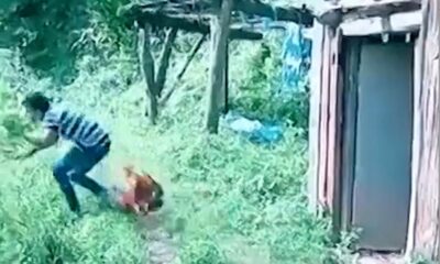 The reporter who went to the village for an interview was attacked by the rooster in the village.
