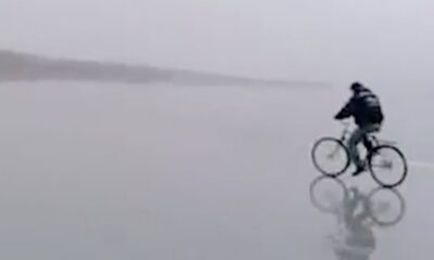Those who attempt to cross the frozen lake with an all-terrain vehicle towing don’t have a happy ending.