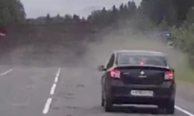 It caused a truck that wanted to overtake by getting in between two trucks, leaving the road.