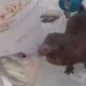 Cunning Marten playing with fisher and grabbing fish than runaway