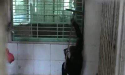 Monkey caught while being kidnapped by smugglers is cleaning the zoo of the hospital where it was held