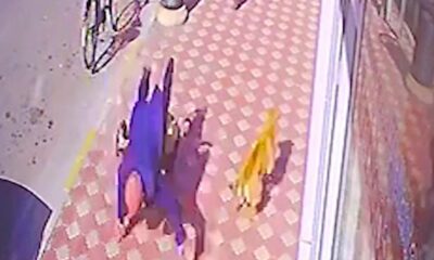 The mischievous dog of the streets hits the man who is going to the market, and the man falls to the ground and is slightly injured.