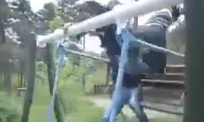 Bored stupid kids abuse the swing they found in the park and get their answer