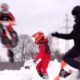 Bad, an example of fatherhood, the father is trying to give a life lesson by throwing his child into the snow
