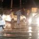 Turkish police helping moto biker frustrated in water during food delivery