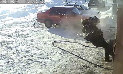 The female driver drove while the pump head was in the vehicle’s tank, forgetting that was pumping gasoline because she was in hurry to drive