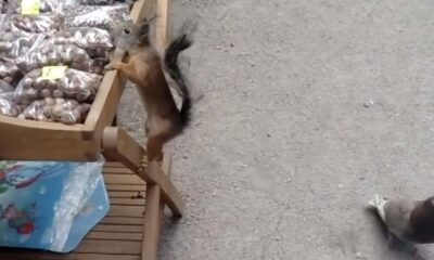 The squirrel who entered the bird feeder was held hostage in the manger, it is thought to have entered there because it starved.