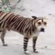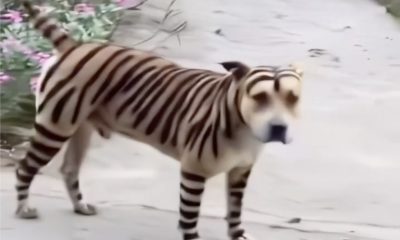 An abandoned dog that was painted to resemble a tiger and let loose in the neighborhood.