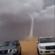 A powerful tornado emerged from the sea and barreled onto the beach, obliterating the sun loungers and furniture.