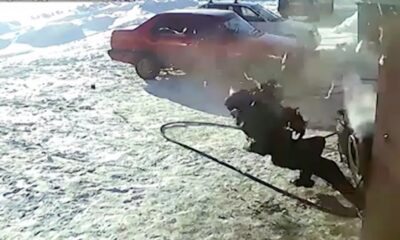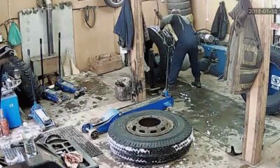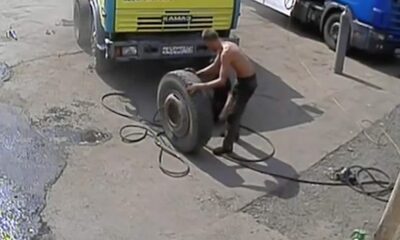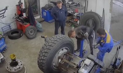 The workers who went to drink vodka while inflating the tire, the tire they forgot outside while drinking inside when they checking the tire, tire exploded