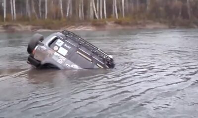 The off-roader, who entered the river by relying on his vehicle, buried his truck in the river.