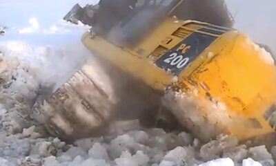 Upon being hauled out by the horse-drawn carriage, the SUV stuck in the mud on the beach was carriage broken into two parts.