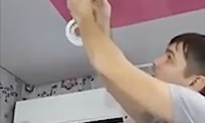 workers cleaning buildings fell to the ground on the first try after the establishment of stairs