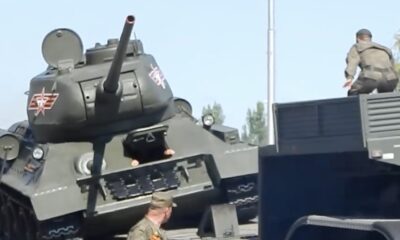 Tank wanted to be loaded on truck toppled during a military demonstration in public