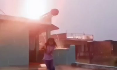 The girl had a narrow escape from lightning while making reels on her terrace.