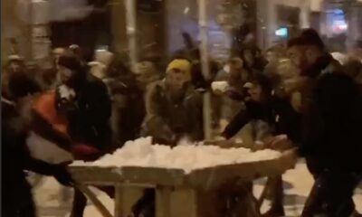 The residents of the city, which has not seen snow for a long time, are fighting a collective snowball fight between the neighborhoods.