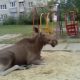 The dog drove a lynx onto a post in a Russian village. The lynx remained on the post until people arrived.